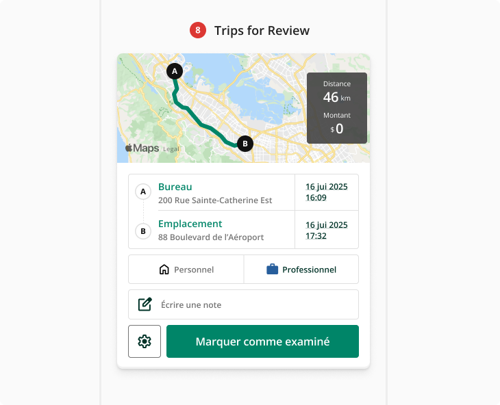 Examinez et approuvez les rapports kilométriques en un instant pour accélérer les remboursements et gagner du temps.